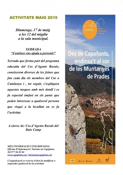Xerrada que forma part del programa educatiu del Cos d’Agents Rurals, coneixerem diverses de les feines que fan cada dia els membres del Car a Catalunya i , tot seguit, s’expliquen aquestes tasques amb més detall i es fa especial èmfasi en els punts que poden interessar a qualsevol persona que visqui a la localitat on es fa l’activitat.